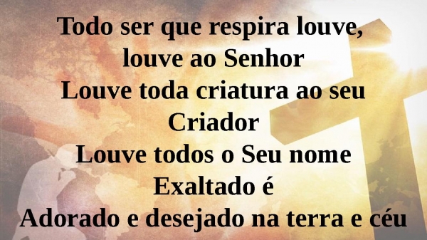 - Todo ser que respira louve, louve ao SenhorLouve toda criatura ao seu CriadorLouve todos o Seu nomeExaltado éAdorado e desejado na terra e céu