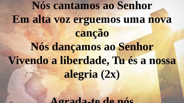 - Nós cantamos ao SenhorEm alta voz erguemos uma nova cançãoNós dançamos ao SenhorVivendo a liberdade, Tu és a nossa alegria (2x)Agrada-te de nós
