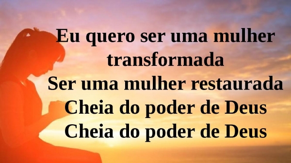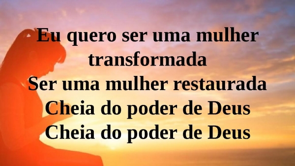 - Eu quero ser uma mulher transformadaSer uma mulher restauradaCheia do poder de DeusCheia do poder de Deus