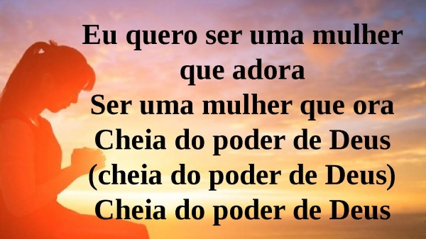 - Eu quero ser uma mulher que adoraSer uma mulher que oraCheia do poder de DeusCheia do poder de Deus