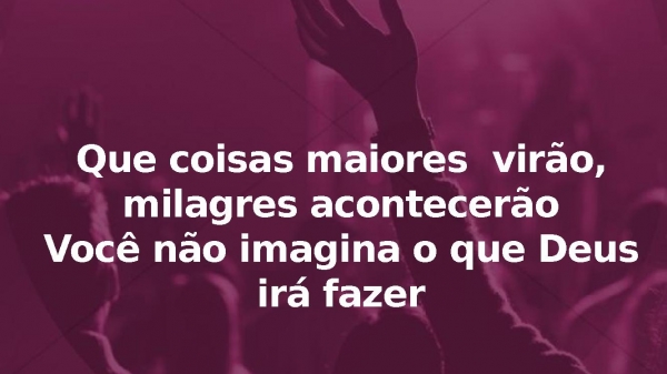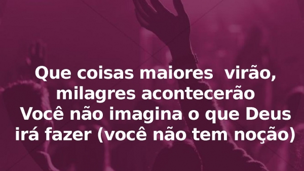 - Que coisas maiores virão, milagres acontecerãoVocê não imagina o que Deus irá fazer (você não tem noção)