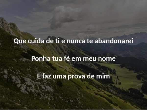 - Que cuida de ti e nunca te abandonareiPonha tua fé em meu nomeE faz uma prova de mim
