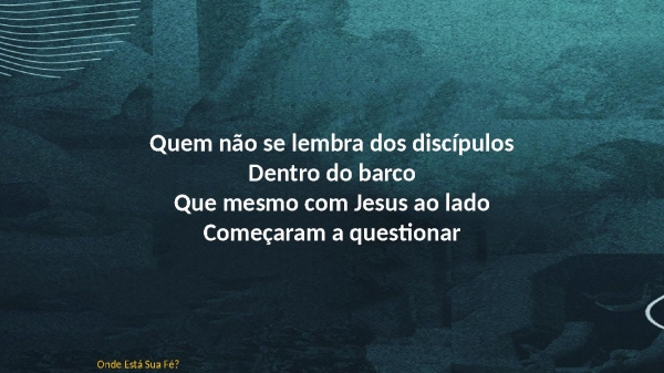 - Quem não se lembra dos discípulosDentro do barcoQue mesmo com Jesus ao ladoComeçaram a questionarOnde Está Sua Fé?