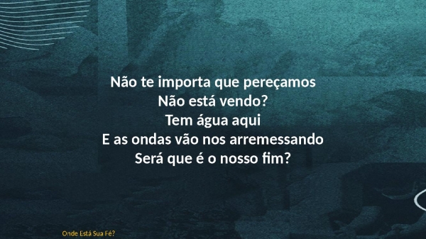 - Não te importa que pereçamosNão está vendo?Tem água aquiE as ondas vão nos arremessandoSerá que é o nosso fim?Onde Está Sua Fé?