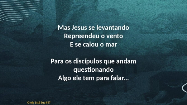 - Mas Jesus se levantandoRepreendeu o ventoE se calou o marPara os discípulos que andam questionandoAlgo ele tem para falar...Onde Está Sua Fé?