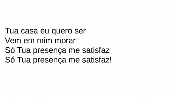 - Tua casa eu quero serVem em mim morarSó Tua presença me satisfazSó Tua presença me satisfaz!