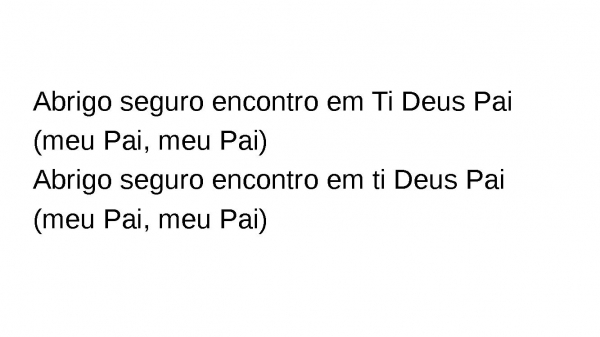 - Abrigo seguro encontro em Ti Deus Pai(meu Pai, meu Pai)Abrigo seguro encontro em ti Deus Pai(meu Pai, meu Pai)