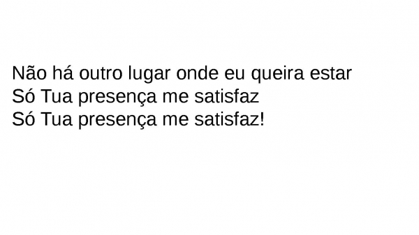 - Não há outro lugar onde eu queira estarSó Tua presença me satisfazSó Tua presença me satisfaz!