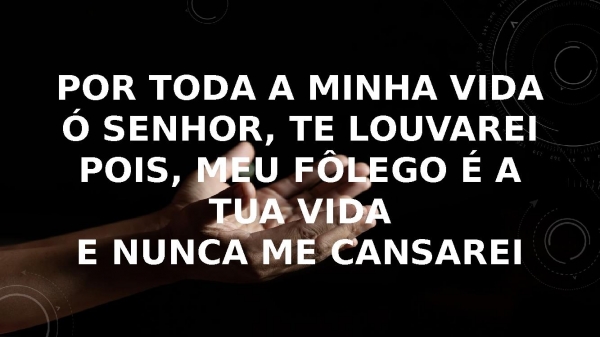 - Por toda a minha vidaÓ senhor, te louvareiPois, meu fôlego é a tua vidaE nunca me cansarei