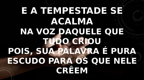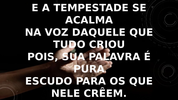 - E a tempestade se acalmaNa voz daquele que tudo criouPois, sua palavra é puraEscudo para os que nele crêem.