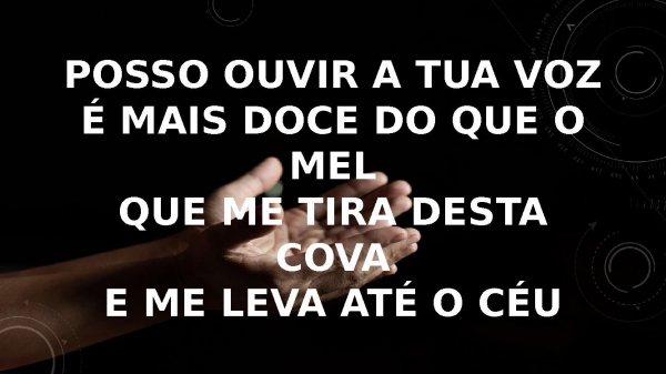 - Posso ouvir a tua vozÉ mais doce do que o melQue me tira desta covaE me leva até o céu