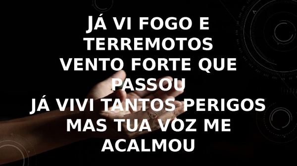 - Já vi fogo e terremotosVento forte que passouJá vivi tantos perigosMas tua voz me acalmou