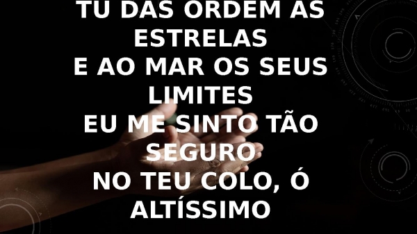 - Tu dás ordem às estrelasE ao mar os seus limitesEu me sinto tão seguroNo teu colo, ó altíssimo