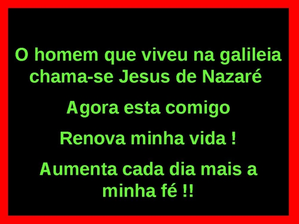 - O homem que viveu na galileiachama-se Jesus de Nazaré Agora esta comigoRenova minha vida !Aumenta cada dia mais a minha fé !!
