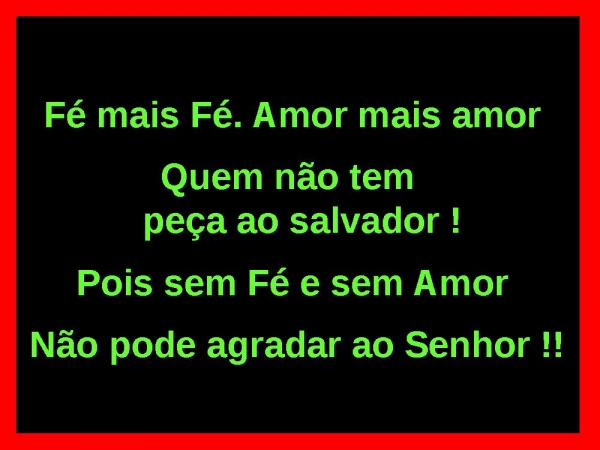 - Fé mais Fé. Amor mais amor Quem não tem peça ao salvador !Pois sem Fé e sem Amor Não pode agradar ao Senhor !!