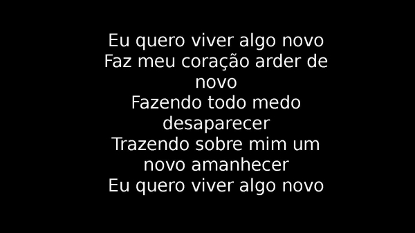 - Eu quero viver algo novoFaz meu coração arder de novoFazendo todo medo desaparecerTrazendo sobre mim um novo amanhecerEu quero viver algo novo(2x)