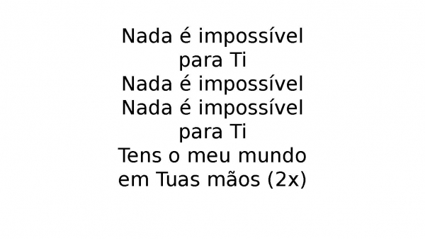 - Nada é impossível para TiNada é impossívelNada é impossível para TiTens o meu mundo em Tuas mãos (2x)