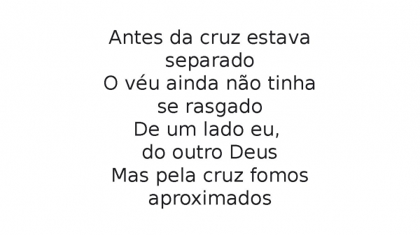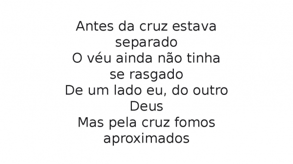 - Antes da cruz estava separadoO véu ainda não tinha se rasgadoDe um lado eu, do outro DeusMas pela cruz fomos aproximados