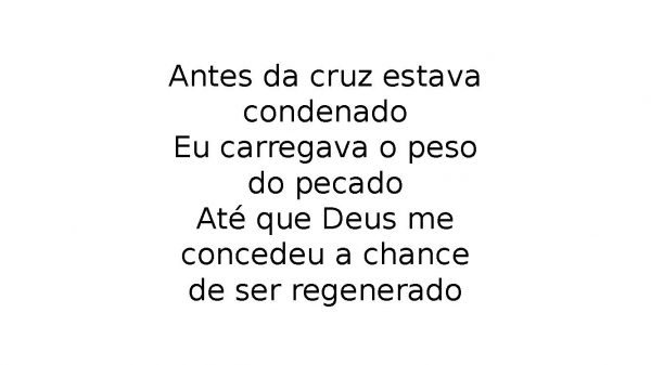 - Antes da cruz estava condenadoEu carregava o peso do pecadoAté que Deus me concedeu a chance de ser regenerado