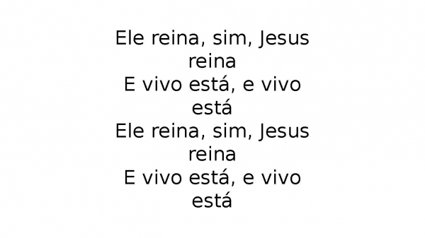 - Ele reina, sim, Jesus reinaE vivo está, e vivo estáEle reina, sim, Jesus reinaE vivo está, e vivo está