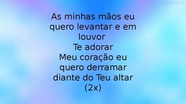 - As minhas mãos eu quero levantar e em louvor Te adorarMeu coração eu quero derramar diante do Teu altar(2x)