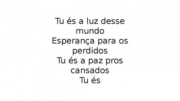 - Tu és a luz desse mundoEsperança para os perdidosTu és a paz pros cansadosTu és