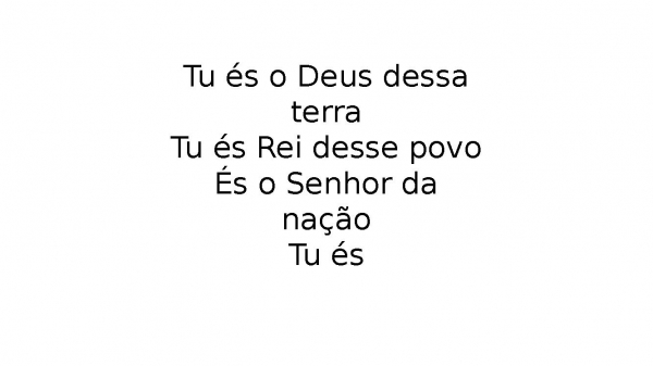 - Tu és o Deus dessa terraTu és Rei desse povoÉs o Senhor da naçãoTu és