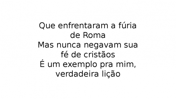 - Que enfrentaram a fúria de RomaMas nunca negavam sua fé de cristãosÉ um exemplo pra mim, verdadeira lição