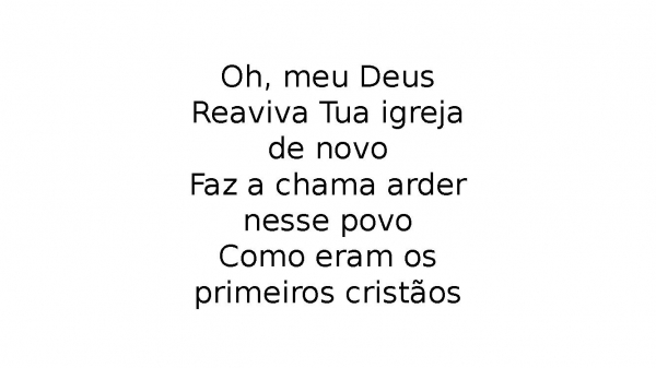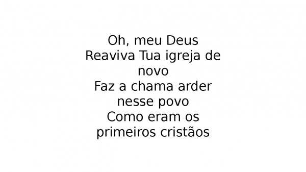 - Oh, meu DeusReaviva Tua igreja de novoFaz a chama arder nesse povoComo eram os primeiros cristãos