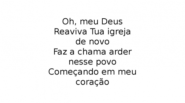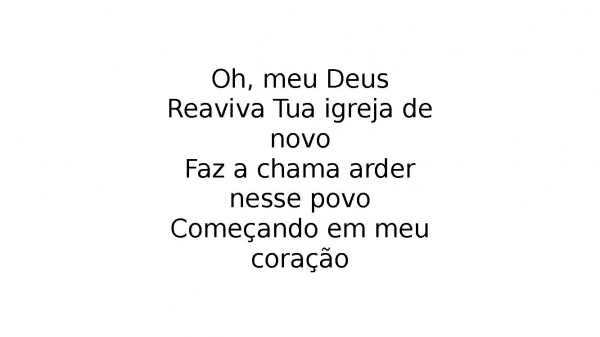 - Oh, meu DeusReaviva Tua igreja de novoFaz a chama arder nesse povoComeçando em meu coração