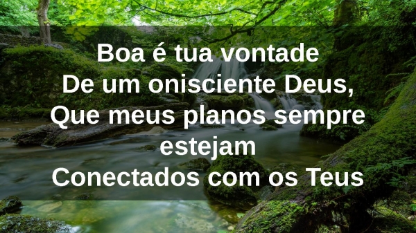 - Boa é tua vontadeDe um onisciente Deus,Que meus planos sempre estejamConectados com os Teus