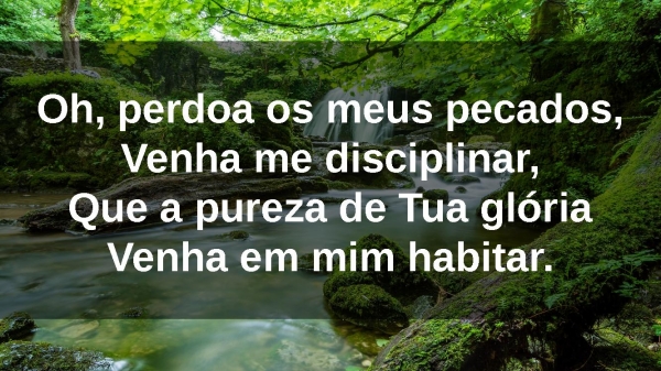 - Oh, perdoa os meus pecados,Venha me disciplinar,Que a pureza de Tua glóriaVenha em mim habitar.