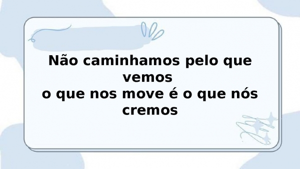 - Não caminhamos pelo que vemos o que nos move é o que nós cremos