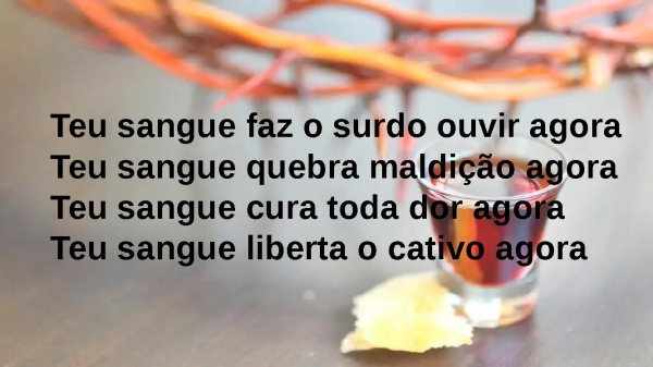 - Teu sangue faz o surdo ouvir agoraTeu sangue quebra maldição agoraTeu sangue cura toda dor agoraTeu sangue liberta o cativo agora