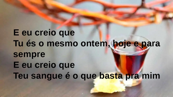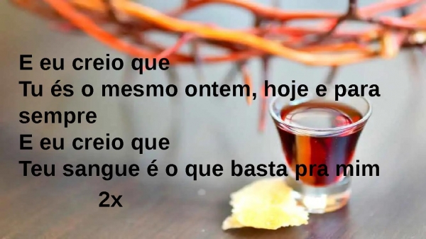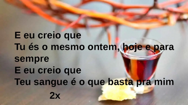 - E eu creio queTu és o mesmo ontem, hoje e para sempreE eu creio queTeu sangue é o que basta pra mim