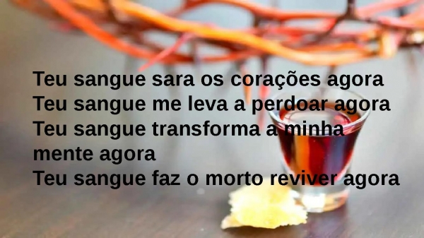 - Teu sangue sara os corações agoraTeu sangue me leva a perdoar agoraTeu sangue transforma a minha mente agoraTeu sangue faz o morto reviver agora