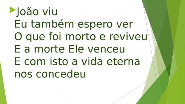 - João viuEu também espero verO que foi morto e reviveuE a morte Ele venceuE com isto a vida eterna nos concedeu