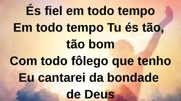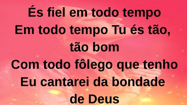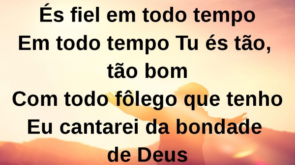 - És fiel em todo tempoEm todo tempo Tu és tão, tão bomCom todo fôlego que tenhoEu cantarei da bondade de Deus