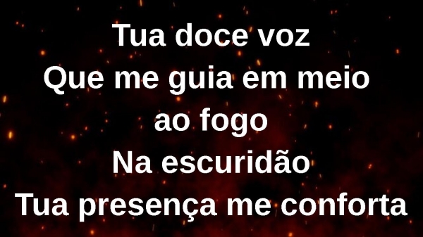 - Tua doce vozQue me guia em meio ao fogoNa escuridãoTua presença me conforta