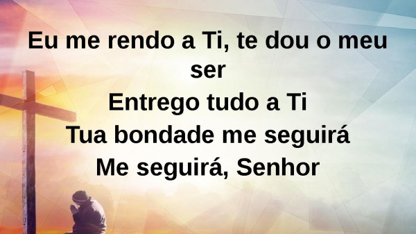 - Eu me rendo a Ti, te dou o meu serEntrego tudo a TiTua bondade me seguiráMe seguirá, Senhor