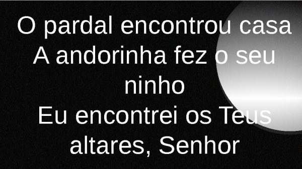 - O pardal encontrou casaA andorinha fez o seu ninhoEu encontrei os Teus altares, Senhor