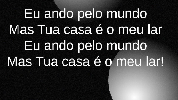 - Eu ando pelo mundoMas Tua casa é o meu larEu ando pelo mundoMas Tua casa é o meu lar!