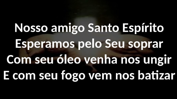 - Nosso amigo Santo EspíritoEsperamos pelo Seu soprarCom seu óleo venha nos ungirE com seu fogo vem nos batizar