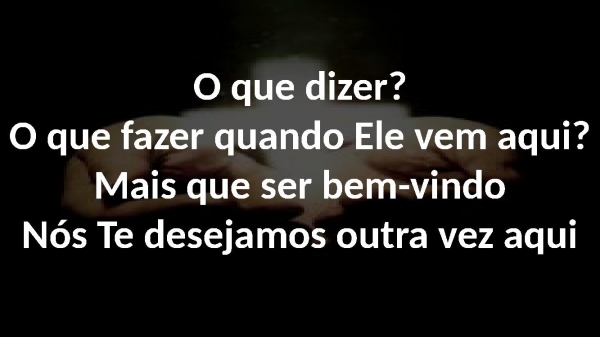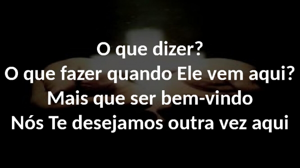 - O que dizer?O que fazer quando Ele vem aqui?Mais que ser bem-vindoNós Te desejamos outra vez aqui