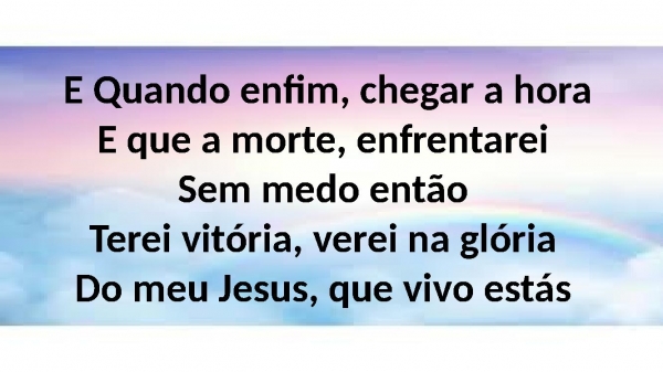 - E Quando enfim, chegar a horaE que a morte, enfrentareiSem medo entãoTerei vitória, verei na glóriaDo meu Jesus, que vivo estás