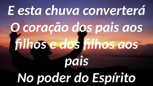 - E esta chuva converteráO coração dos pais aos filhos e dos filhos aos paisNo poder do Espírito