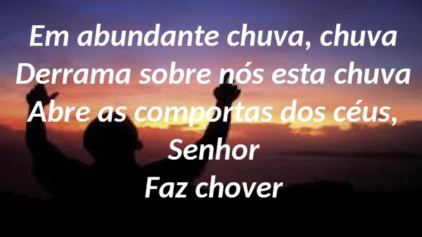 - Em abundante chuva, chuvaDerrama sobre nós esta chuvaAbre as comportas dos céus, SenhorFaz chover