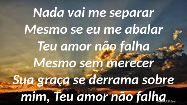 - Nada vai me separarMesmo se eu me abalarTeu amor não falhaMesmo sem merecerSua graça se derrama sobre mim, Teu amor não falha