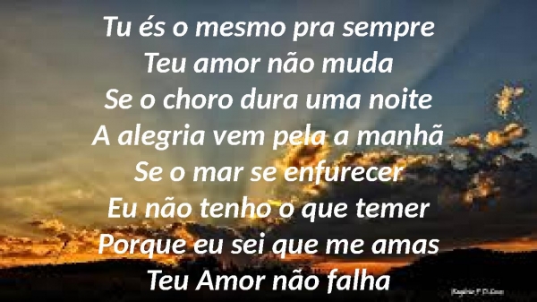 - Tu és o mesmo pra sempreTeu amor não mudaSe o choro dura uma noiteA alegria vem pela a manhãSe o mar se enfurecerEu não tenho o que temerPorque eu sei que me amasTeu Amor não falha