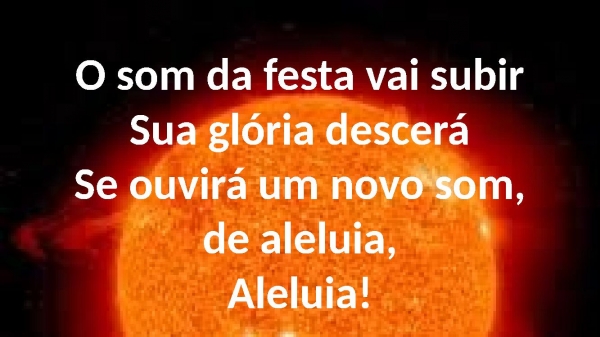 - O som da festa vai subirSua glória desceráSe ouvirá um novo som,de aleluia,Aleluia!